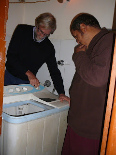 | Mr Fix it trying to get the washing machine at the Nyingma Gonpa to work again |